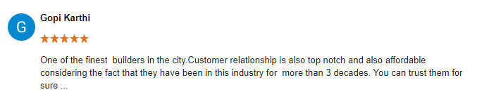 We commenced our operations way back in 1991, as a real estate firm promoting residential layouts in and around Chennai. Over the years, we have successfully sold over 200 sites, mainly in Porur, Manapakkam and kundrathur areas of Chennai and in the process earned the goodwill and market respectability in the real estate industry. Having gained the experience in promoting many residential and commercial sites, we entered in to the construction arena in the year 1996 to respond efficiently to the changing market needs.