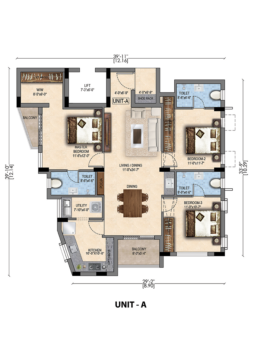 | 3rd Floor | 3A | 3 BHK | 1495 | - |