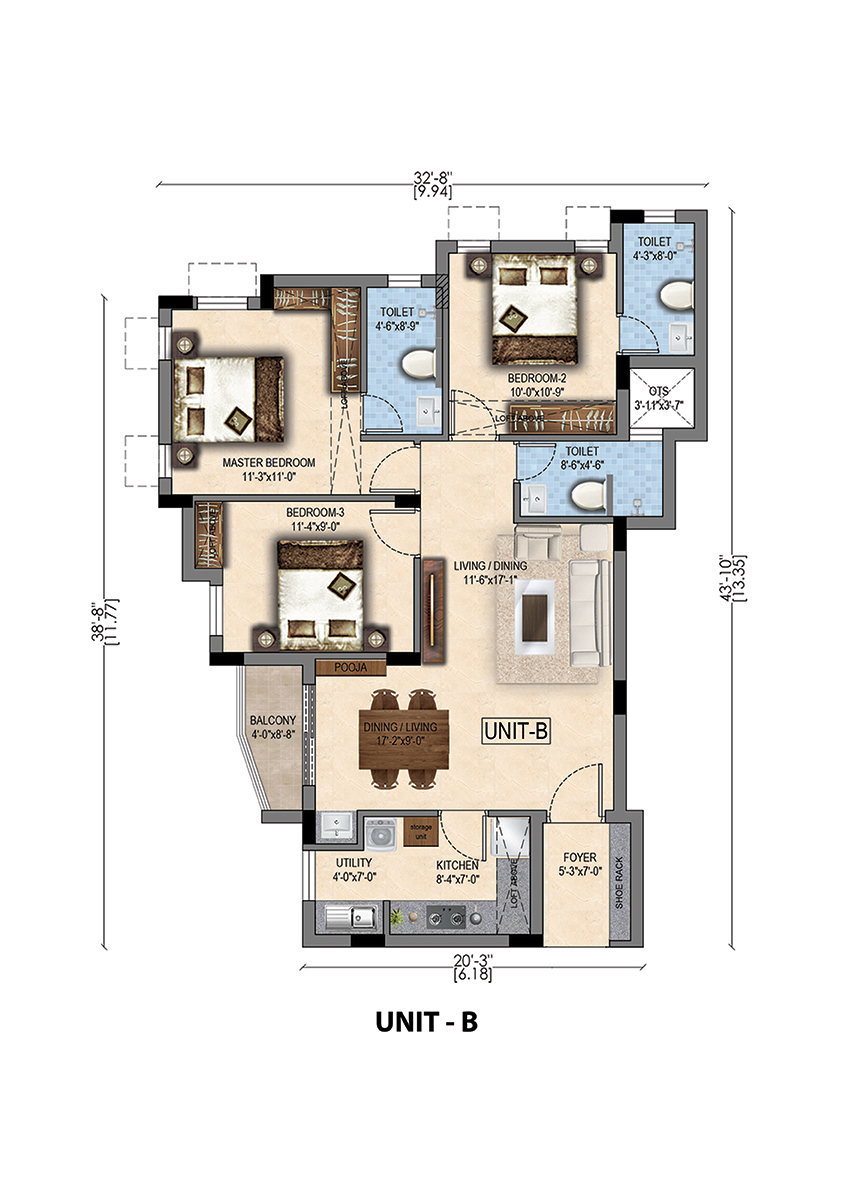 | 3rd Floor | 3B | 3 BHK | 1196 | - |